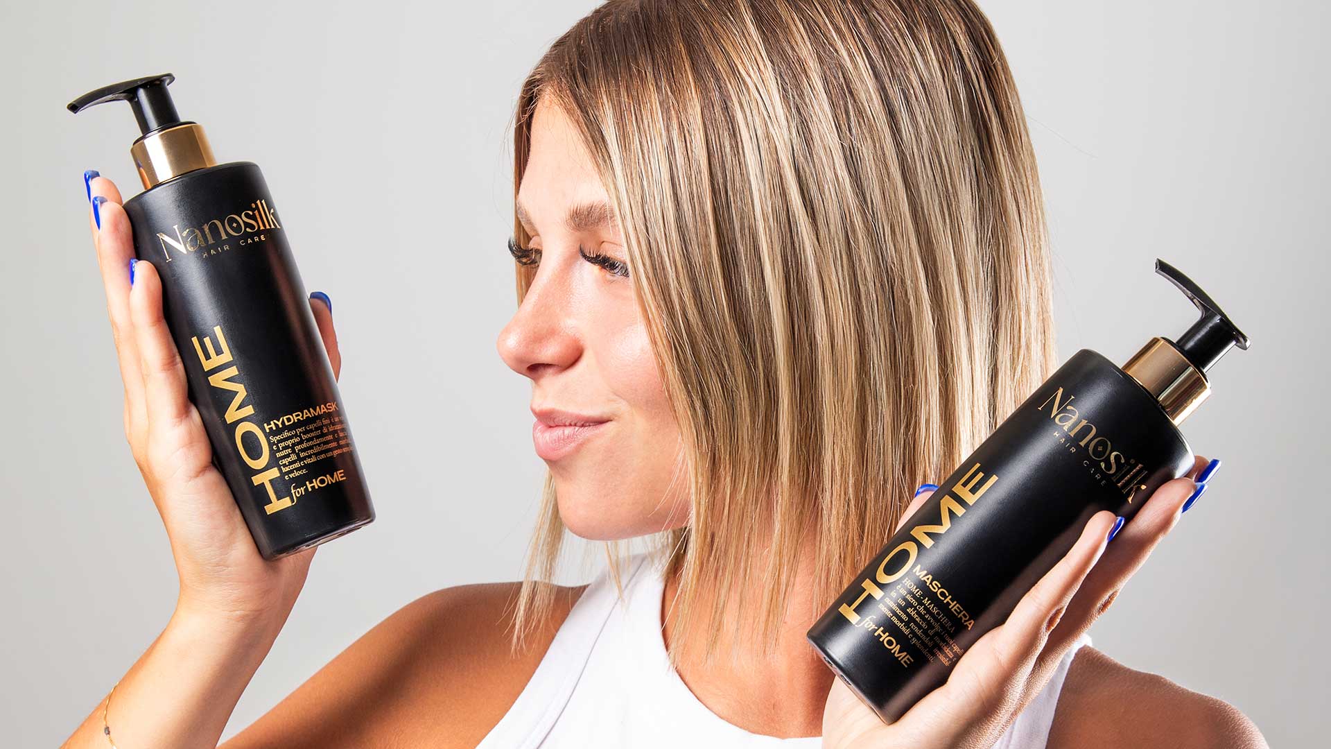 Home Shampoo, Home Maschera e Home Hydramask sono i tuoi alleati quotidiani per capelli setosi, lucenti e perfettamente disciplinati, giorno dopo giorno. Ogni formula è pensata per agire in sinergia con la fibra capillare, rispettando le esigenze di ogni tipo di capello e supportando l’effetto lisciante e rigenerante della Nanoplastia.