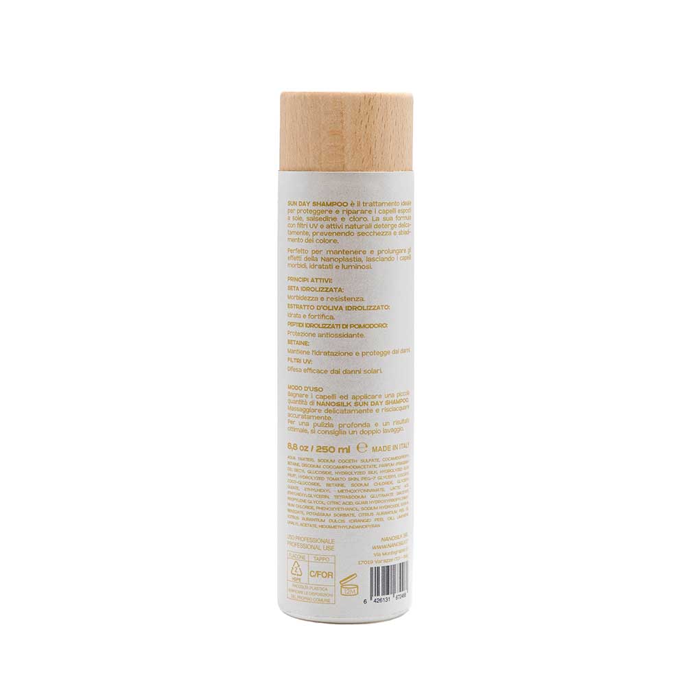 Sun Day Shampoo deterge con delicatezza i capelli esposti a sole, cloro, vento e salsedine,rimuovendo impuritร e residui senza seccare il cuoio capelluto.